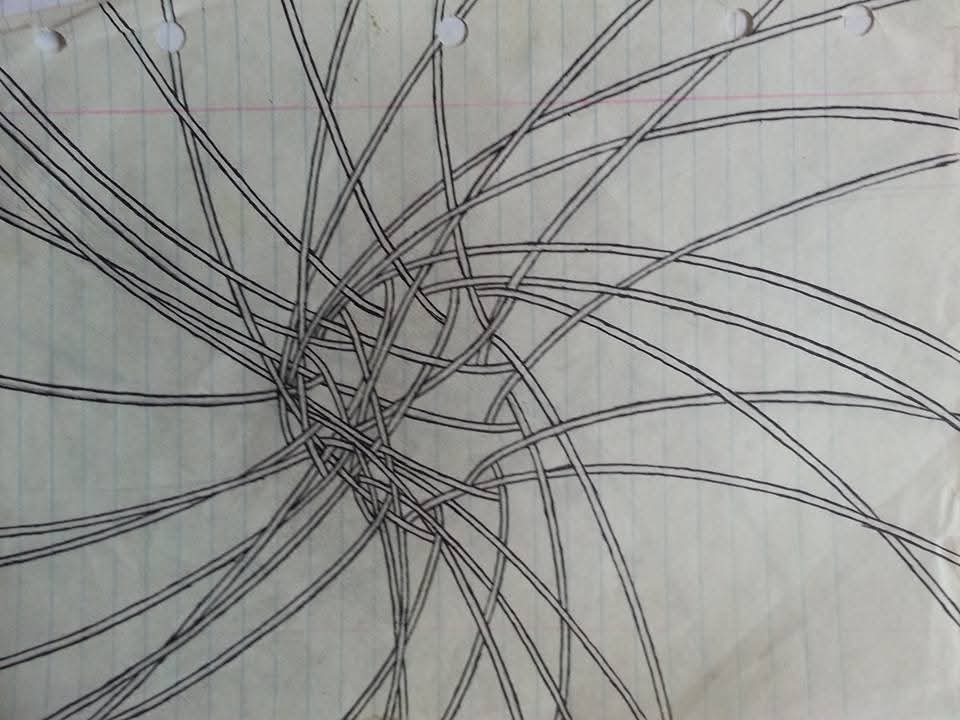 I was 17 when I drew these, trying to acquire my GED through an at risk-youth boot camp, for troubled and problematic kids. That was the Michigan Youth Challenge Academy, it certainly put my life on a better course for a time, and it led to these drawings. I fell in love with reading, my fascination of astronomy only continued to grow. These spirals are an interpretation of gravity, the unseen interconnecting web holding the celestial objects of our universe together. A few years ago, I tried to repurpose one of them to be used as the cover art for a writing project. Now, as of recent (January 2025) I’ve been reworking them in Adobe lightroom.