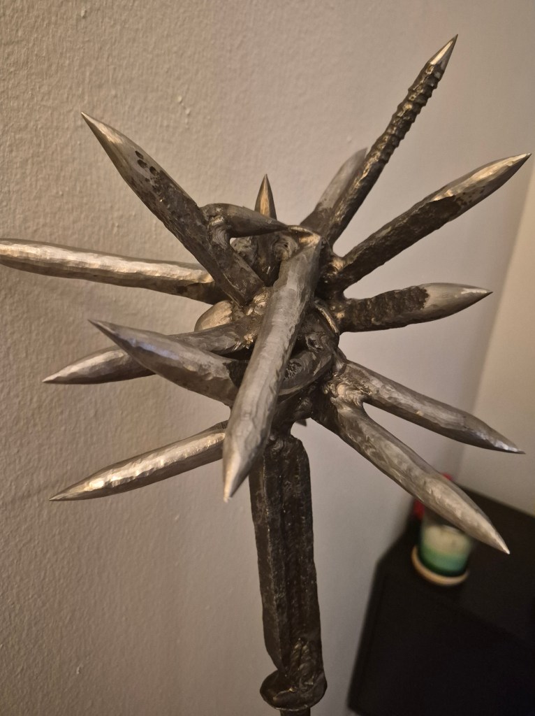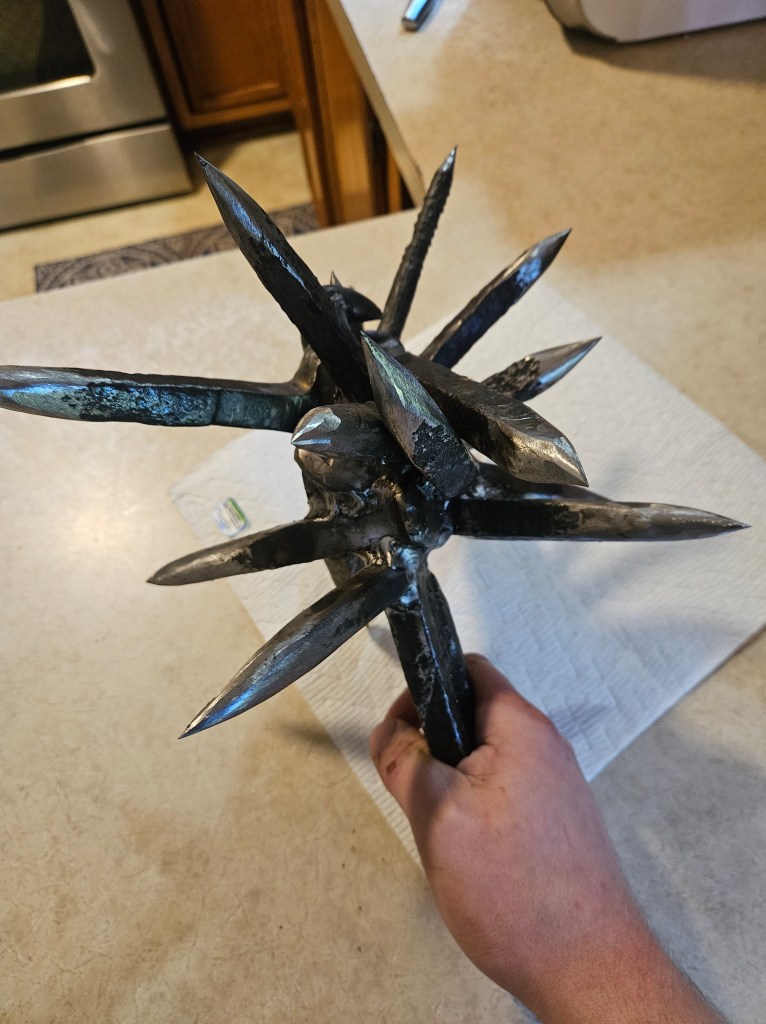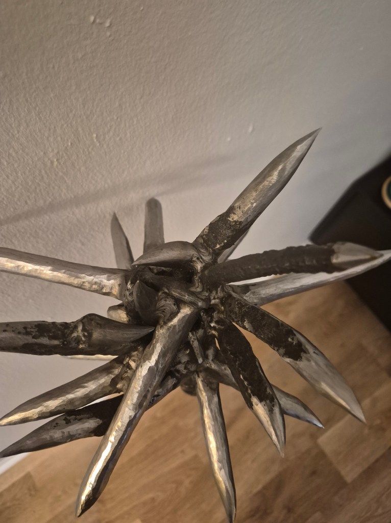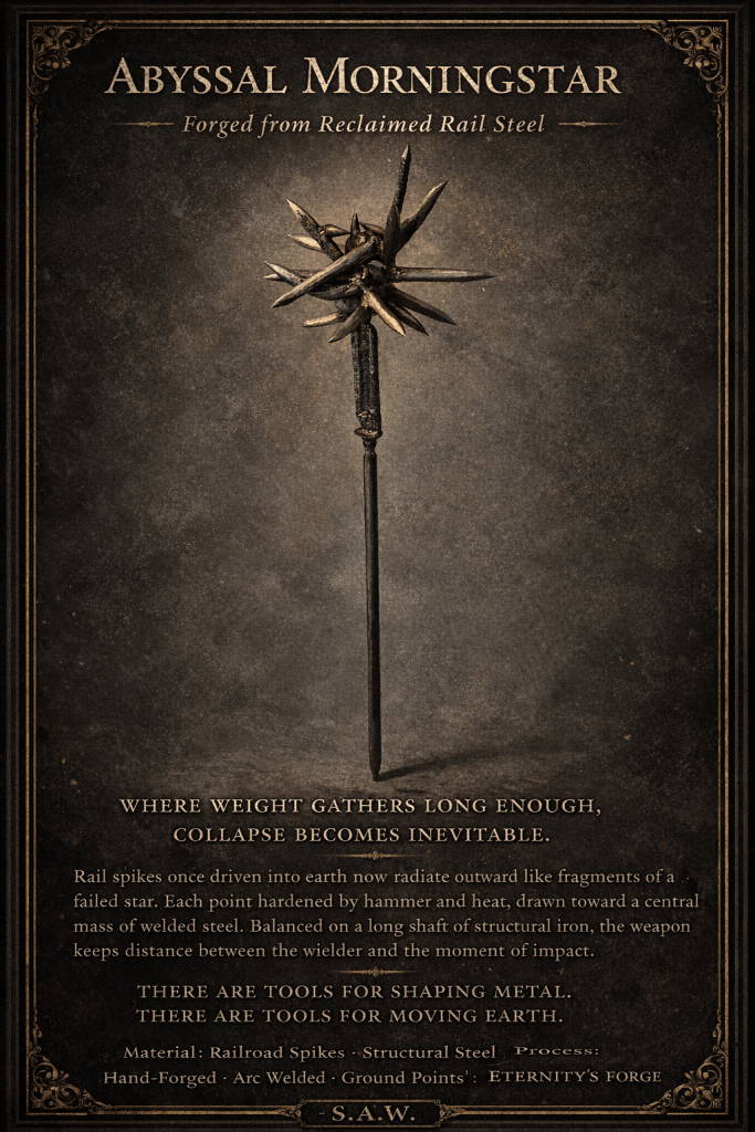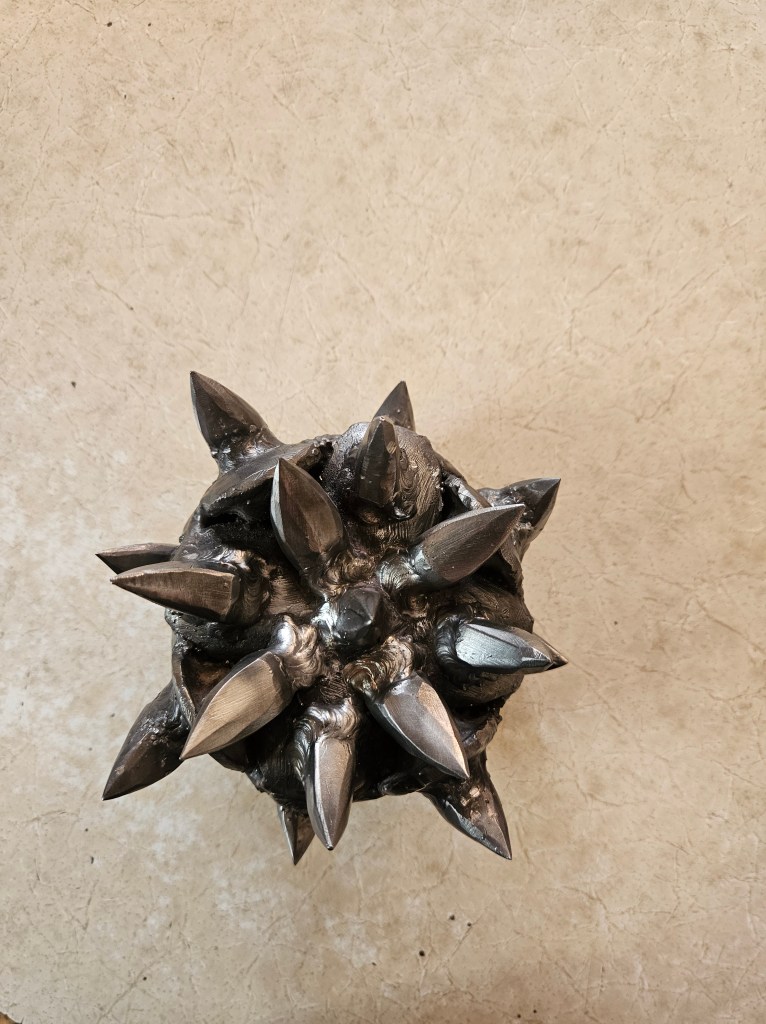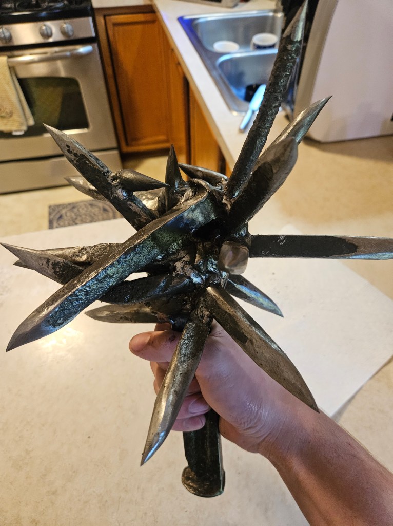 I do not make weapons as products. I do not make them for sale. I make them because they sit at a powerful crossroads of geometry, force, history, and art. Every line, edge, spike, and curve is part of a deeper investigation into form—how mass carries intention, how balance changes presence, and how ancient makers understood something modern culture often forgets: that an object can be severe without being mindless, and dangerous without being spiritually empty. These pieces are personal works, not commodities. They are part of an ongoing study in metal, motion, and design.